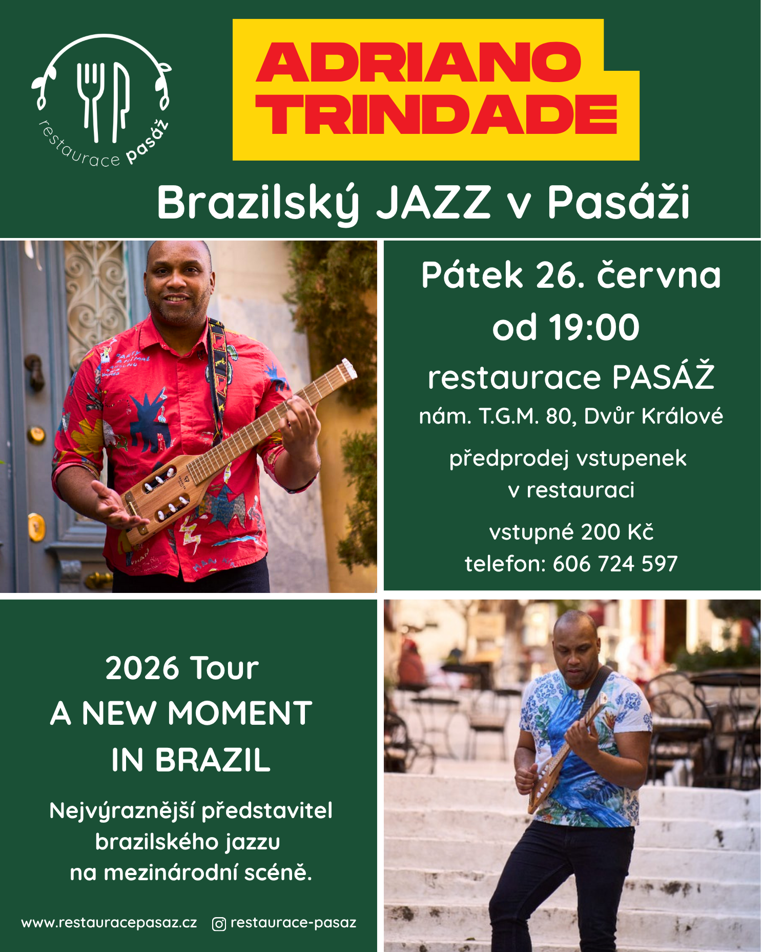 Nech se na chvíli přenést z Dvora Králové rovnou do Brazílie. Brazilský jazz v Pasáži ti přinese večer plný rytmu, energie a autentické atmosféry.