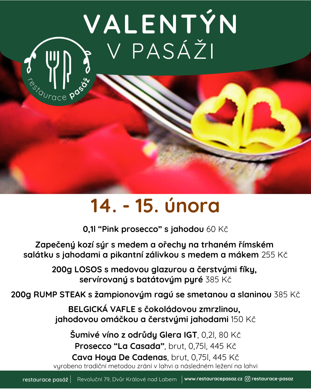 Zveme vás na romantický Valentýn do Restaurace Pasáž ve Dvoře Králové nad Labem.
